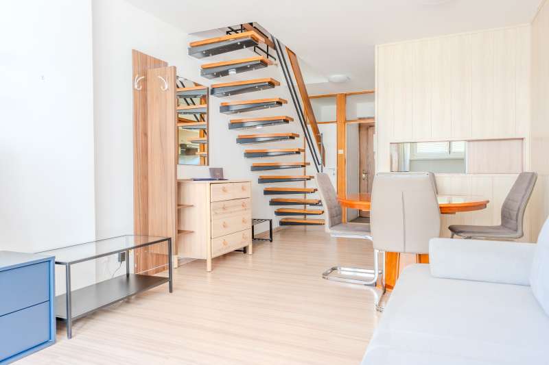 The apartment is divided into 2 floors: