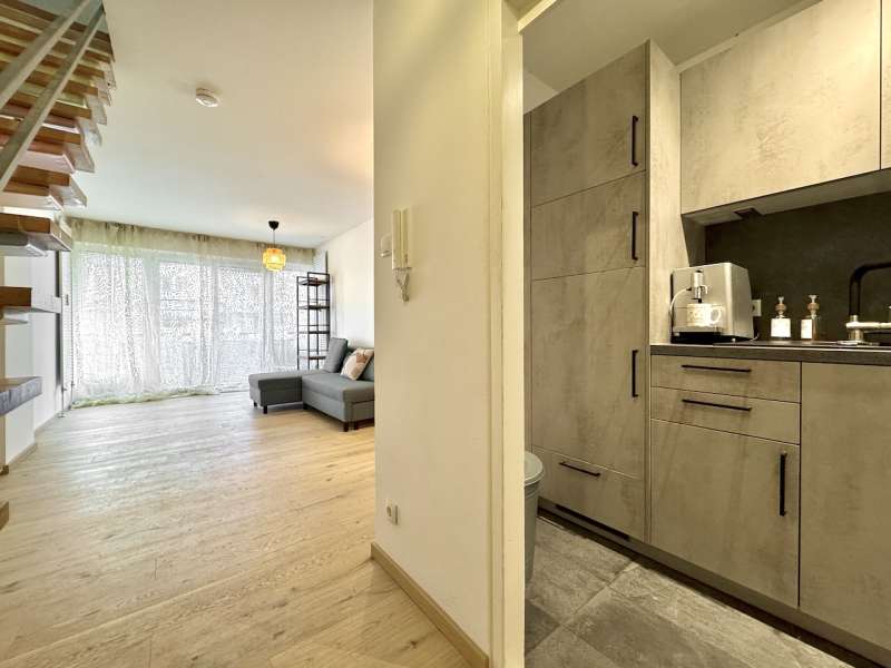 Beautiful, partially furnished student duplex apartment in the center of Krems near Steiner Tor, very quiet location, approx. 74m2, 1 balcony, 1 loggia, bathroom with tub, separate toilet, two bedrooms, built-in wardrobes, high-quality parquet flooring, fully equipped fitted kitchen (dishwasher, fridge/freezer, stove/oven, washing machine), storage room, heating by means of district heating (monthly advance payment included in the rent), large cellar compartment, parking space can be rented optionally, commission-free