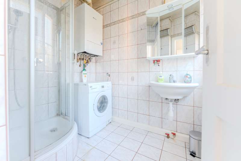 The kitchen is fully equipped, as is the bathroom including a washing machine.